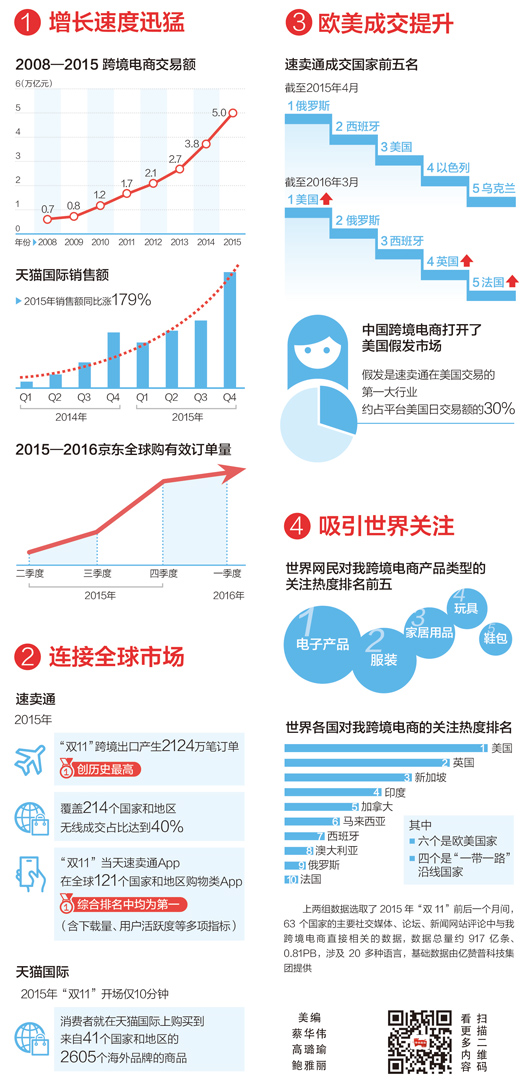 通过跨境电商的连接,中国消费在拉动全球增长,中国制造也赢得了利润增长空间和在价值链中提升位置的良好机遇。我们有理由期待,中国经济转型升级之路越走越宽。(记者 沈寅)